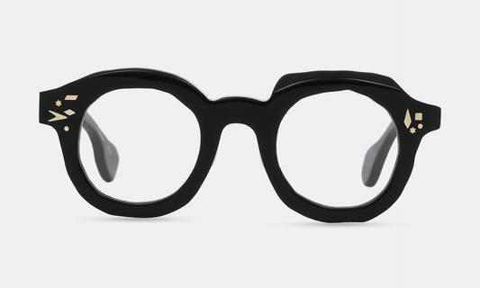 An experimental design in which each part is stacked one by one. Try to place end pieces and bridges freely like building blocks. This forms the structure and creates the eyewear. The combination of parts of different colors and textures creates intricate palette and the illusion of trompe l’oeil.